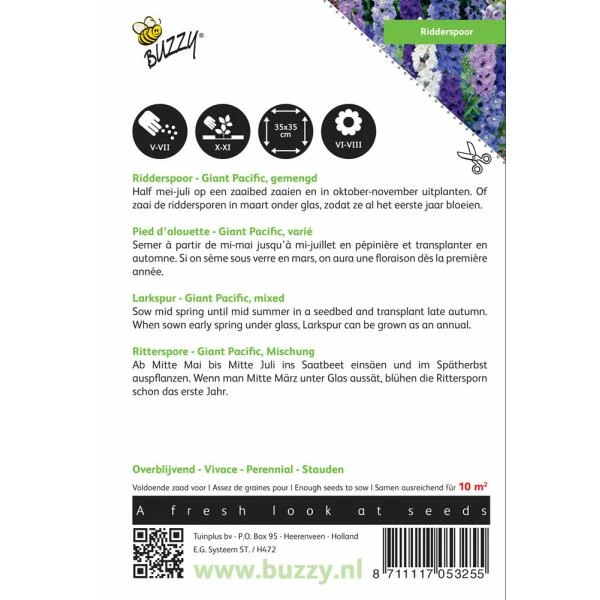 Meerjarige riddersporen die ca. 150 cm hoog worden in een fraai kleuren mengsel. De planten bloeien in blauwe, lila, roze en witte tinten. Prachtig om in de border te verwerken en schitterend op de vaas. Ook geschikt als snijbloem.