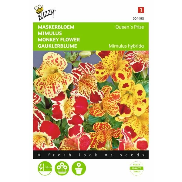 Dit eenjarig gekweekte Mimulus mengsel dat schitterende gevormde bloemen met een heel bijzondere, vrolijk gekleurde vlekkenpatronen geeft, is fantastisch voor bloembakken,