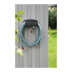 Dankzij de slang- en kraanaansluitingen van het Original Gardena System kan je eenvoudig en flexibel een verlengstuk of ander compatibel Gardena element op de slang aansluiten. Slangopzetstukken zoals sproeiers, broezen en wasborstels kunnen onder de muurbeugel worden bevestigd en opgeborgen zodat je deze altijd bij de hand hebt.